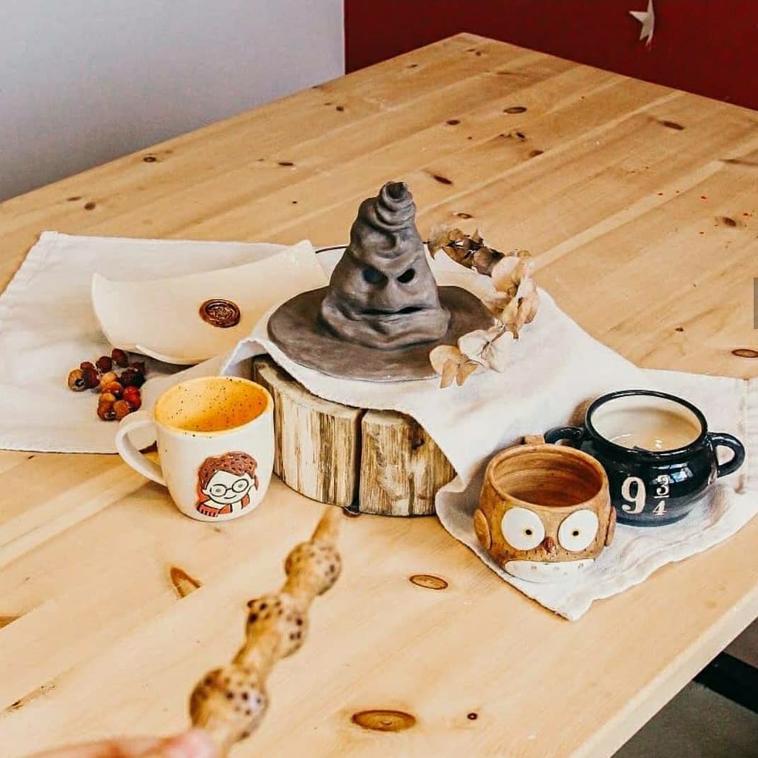 - 5 волшебных изделий: распределительная шляпа, кружка или миска Букля, волшебная палочка, кружка с Гарри, тарелочка